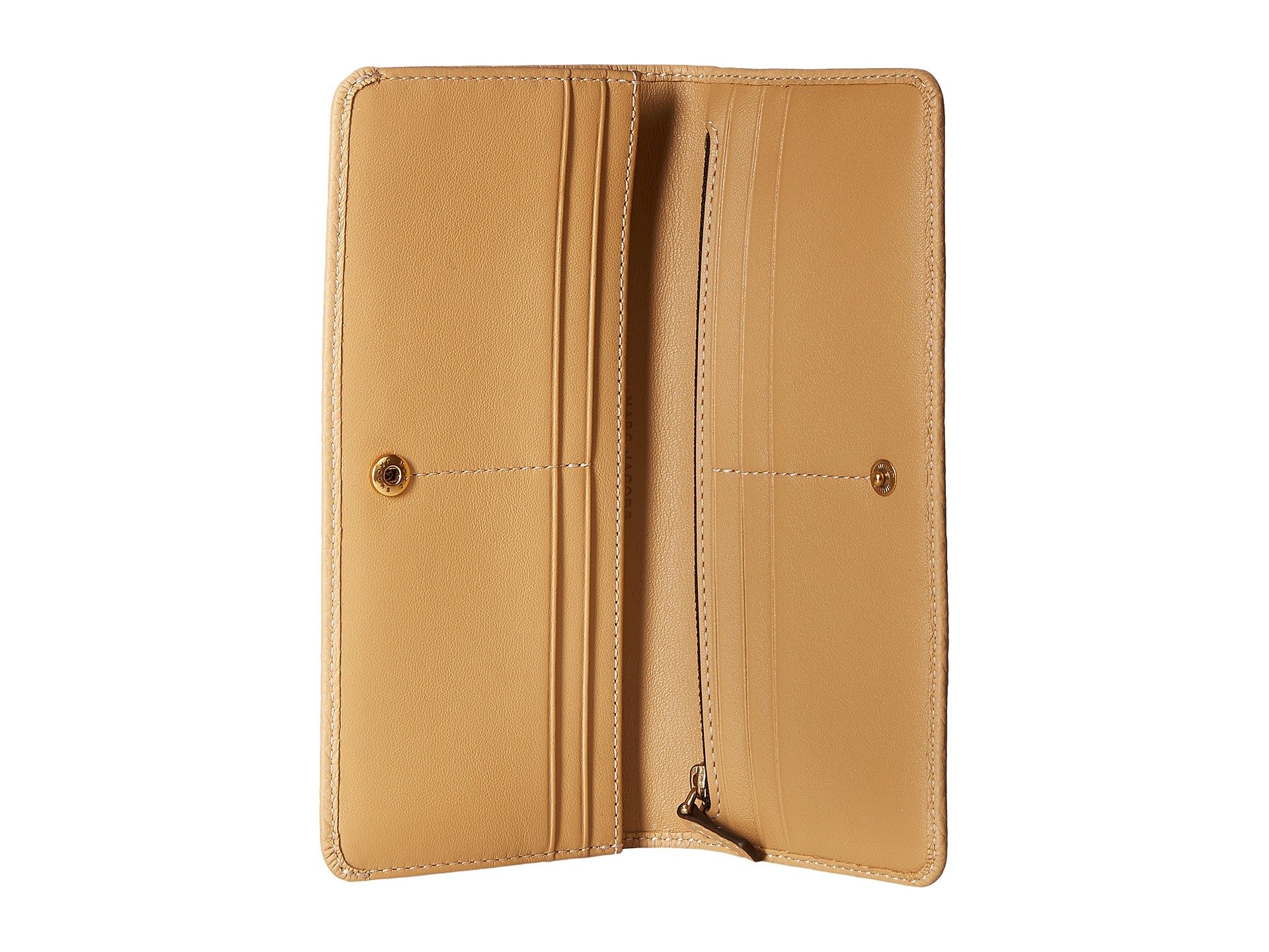 | Product Information SKU: #8719870Cruise through your day with the ease excellence of the Marc Jacobs? Gotham Open Face Wallet.Wallet made of leather. Fold-over style with snap closure. Front exterior zip pocket. Brand name embossed at front. Leather interior features credit card slots, zip pockets, and slip pockets. Imported. This item may ship with an attached security tag. Merchandise returned without the original security tag attached or a damaged tag may not qualify for a refund.Measurements: Bottom Width: 7 1?2 in Depth: 1 in Height: 3 1?2 in Weight: 5.4 oz |