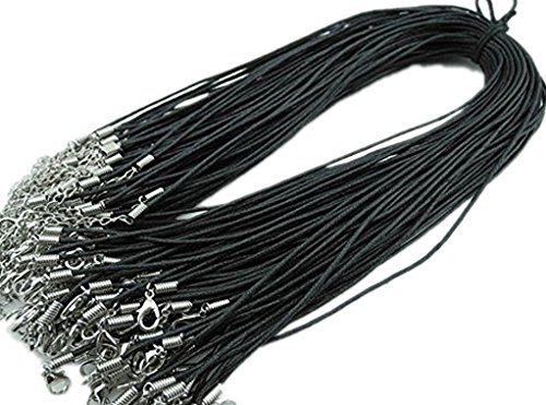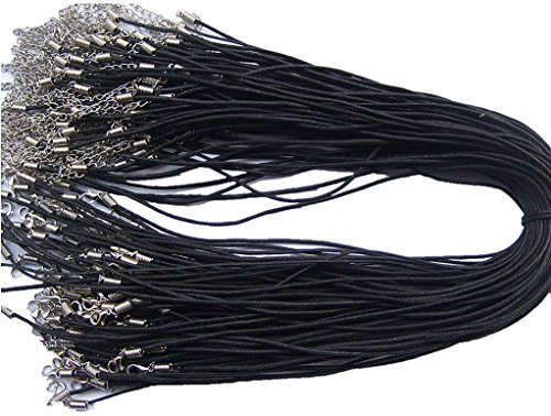 Necklace Cord 20Pcs 18'' 1.5mm Black Waxed Cotton Cord Necklace Cord with 2'' Extension Chain Lead&nickel Free