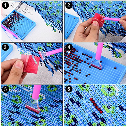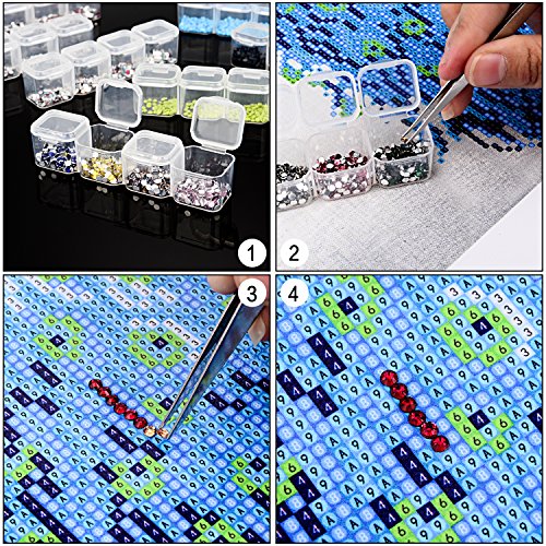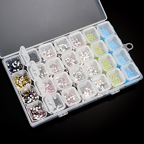 - Select the corresponding diamond color into the plastic plate, shake flick, so that the diamond arranged in a row, use the diamond sticky pen with the clay to paste the diamond and then sticky in the corresponding diamond color number. 28 grids clear storage box organizer, simple and practical,it is convenient for you apart different diamond.