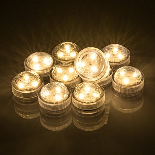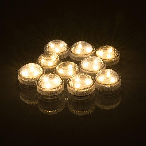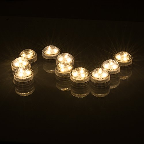 AGPtek 10PCS Warm White Submersible Round LED Candle High Brightness Tea Vase Battery Light Outdoor Garden Pond Pool Bath Disco Bar Spa Tub Decoration Wedding Xmas Floral Decoration Candles