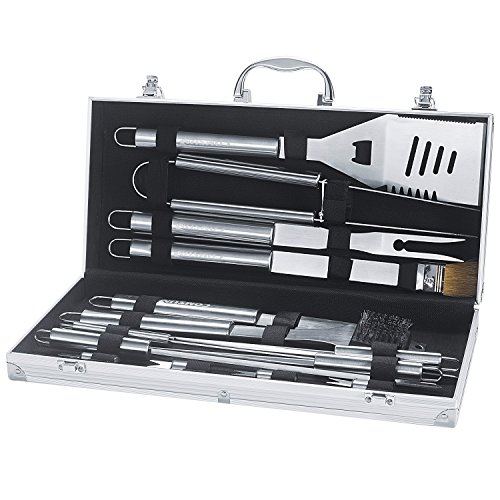 Grill Accessories, Comsun 18 Piece Stainless Steel Barbecue Tools Set, with Aluminum Storage Case for Outdoor Camping Grilling Utensils