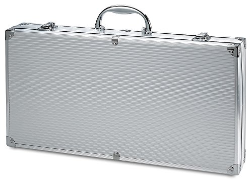 - EASY TO CARRY ALUMINUM CASE: 16-piece barbeque set in an aluminum case with dual latches for secure storage. Carry this aluminum case and arrive at the cookout, tailgate party or picnic looking like a pro. Easily take it with you anywhere. It holds tools firmly while carried. No jingling.