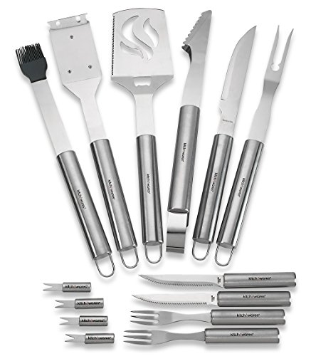 16 Piece Stainless Steel BBQ Accessories Tool Set - Includes Aluminum Storage Case for Barbecue Grill Utensils - By Kitch N' Wares