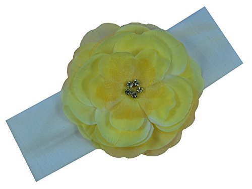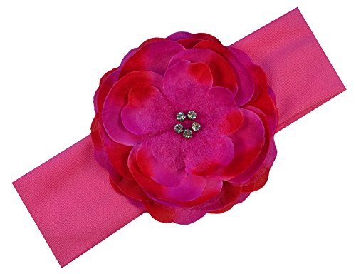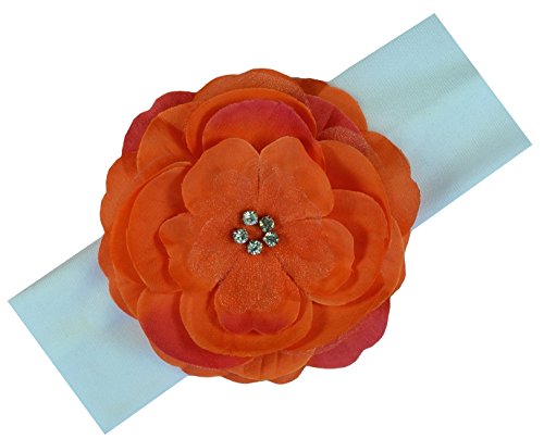 - Feature : Handmade Baby Flower Headband for baby girls / Silk & Organza flower measuring 3.5 inches in width / Center of the flower features 5 sparkling rhinestone / Many colors available, perfect gift for new mom or baby! / Recommended Ages: Newborn-12 Months