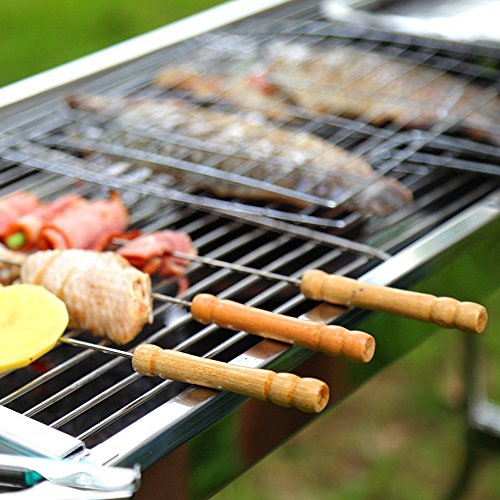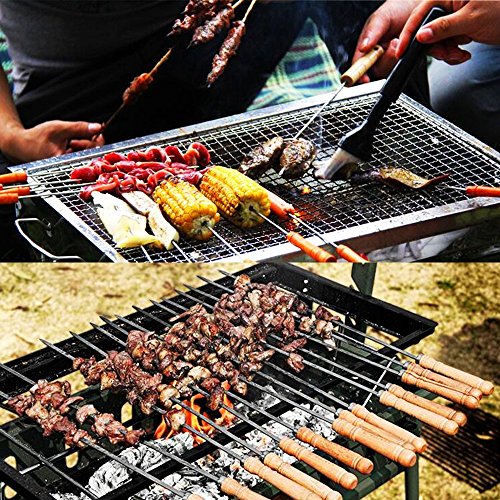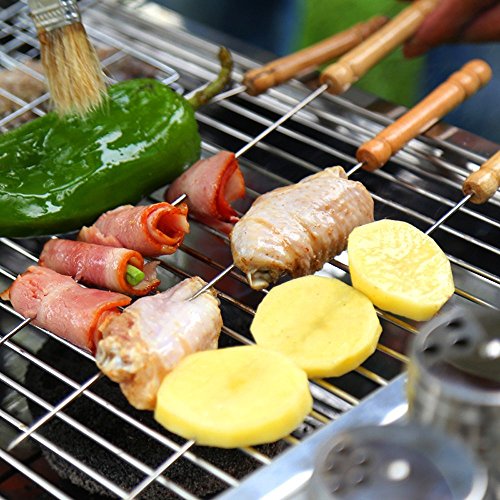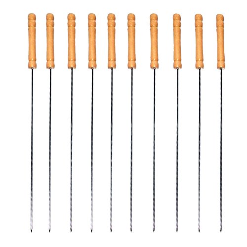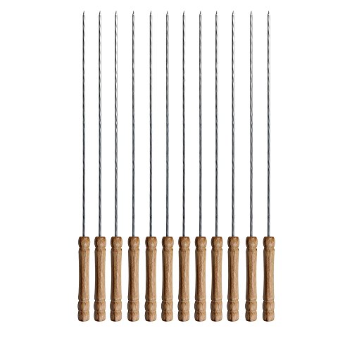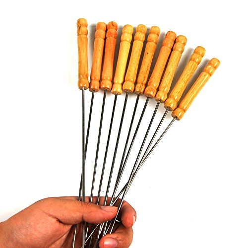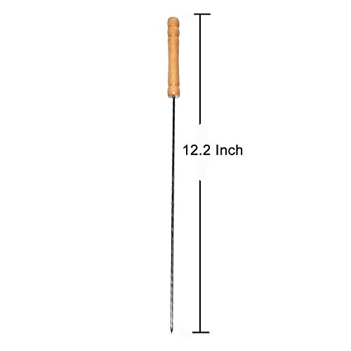12 inches long stainless steel skewers with wooden handle, easy for handling.