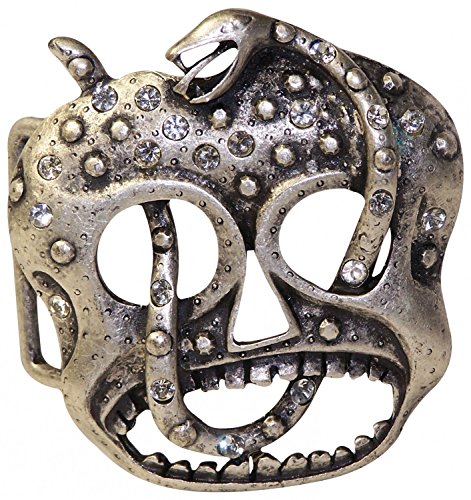 This skull buckle impresses with its super cool design. The skull is silver and set with rhinestones. A rhinestone-embellished snake is also slithering through the skull.? - Shipping takes 3-6 days in Europe and generally not more than 8-10 days to non-European countries.