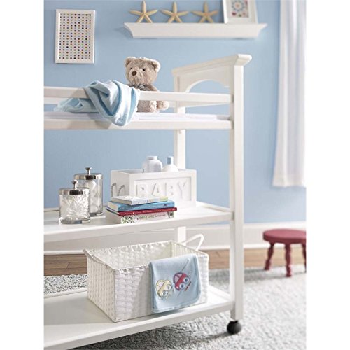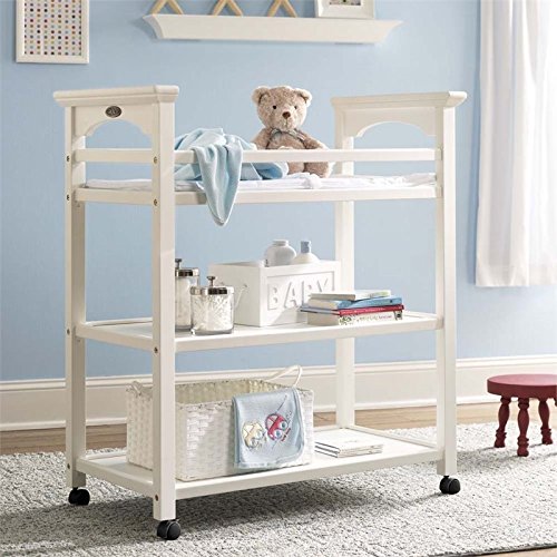Studio : Stork Craft USA Publisher : Stork Craft USA Binding : Baby Product Product Description The Graco Lauren Changing Table provides a safe and convenient place to change and dress your baby. Two large shelves offer an abundance of space to store baby supplies and other necessities within reach. The Graco Lauren Changing Table includes a 1 inch vinyl changing pad with safety strap that provides added comfort and security for your baby. The changing table's four wheels, two locking, allow for easy mobility throughout the home. The Graco Lauren Changing Table is certified by the Juvenile Products Manufacturers Association (JPMA) and is stringently tested to meet or exceed all applicable Consumer Products Safety Commission (CPSC) and American Society for Testing and Materials (ASTM) safety standards to ensure the safest product for your child Features: Finish: White Materials: Wood Features easily accessible open design with abundant storage space Includes vinyl waterproof changing pad with built in safety strap for added security Includes four sturdy rollers (two locking) for ease of mobility Solid pine wood and composite construction. Available in multiple, durable non-toxic finishes ASTM, CPSC and JPMA certified. Minimal Assembly Required. Limited 1 Year Manufacturer's Warranty Specifications: Overall Product Dimensions: 42" H x 37.5" W x 20.5" D Overall Product Weight: 29 lbs 0