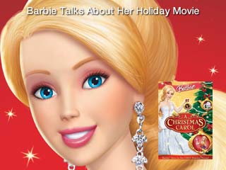 2008 Holiday Barbie doll sparkles in a shimmering white and silvery gown