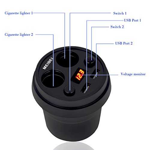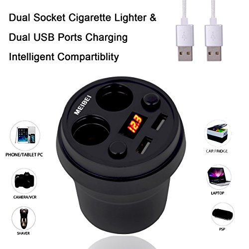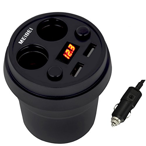 Car Cup Charger, MEIBEI Two-Socket Cigarette Lighter Power Adapter DC Outlet Splitter 3.1A Dual USB Car Charger with LED Voltage Display, Built in 10A Fuse for iPhone iPad Samsung GPS Dashcam