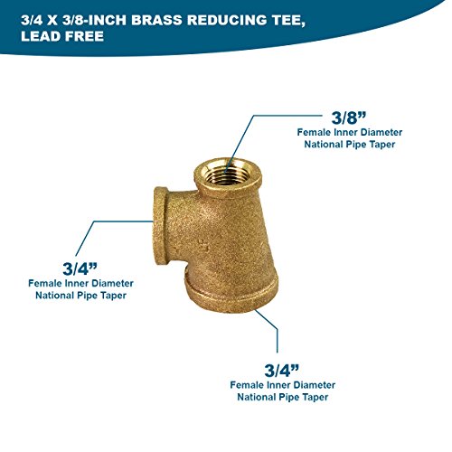 Everflow BRRT0341-NL 3/4 x 3/8-Inch Lead Free Brass Reducing Tee Two Size with Female Threaded Connections Ends, Brass Construction, Higher Corrosion Resistance Economical & Easy to Install
