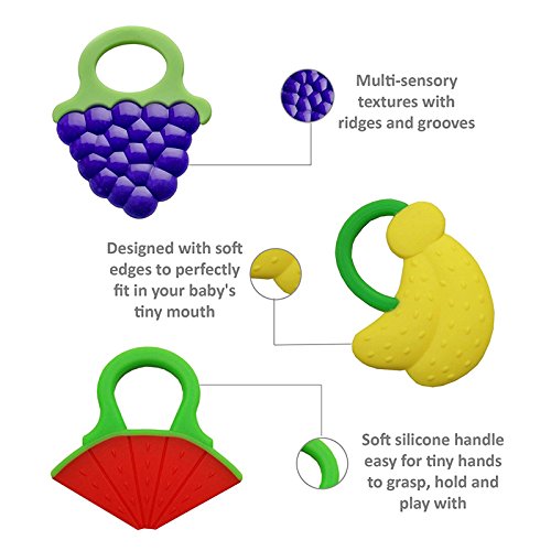 -. Title : Baby Teething Toys Soft Teether Toys Best Infant & Toddler Teething Pain Relief- Non-Toxic,100% Safe BPA Free Fruit Teethers Fruity Chews Ring Teethers 3 Months Plus