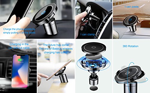 -. Title : 2018 Car Charger Phone Mount, Baseus Universal Air Vent Magnetic Phone Car Mount Holder Car Phone Holder Fast Wireless Chargers QI Wireless Charging Pad Quick charge for iPhone X 8 8 Plus, Galaxy