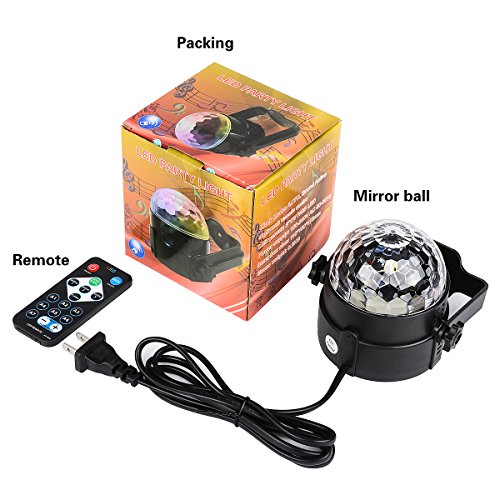 Handy remote control - control the magic ball away from stage, 3 sound-activated modes /7 lighting modes(red, green, blue, rg, bg, rb, rgb) / motor rotating speed control.