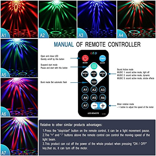 Great Addition to: Birthday party, dance party, wedding, anniversaries, family gathering, valentine, graduations, holidays and many other festival celebrations! NOTE: 1.This Stage Light may not sync with music if the volume is too low.