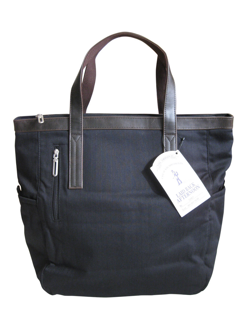 【LAID BACK AFTERNOON】 ヘリンボーン織柄 コットン手提げ・トートバッグ