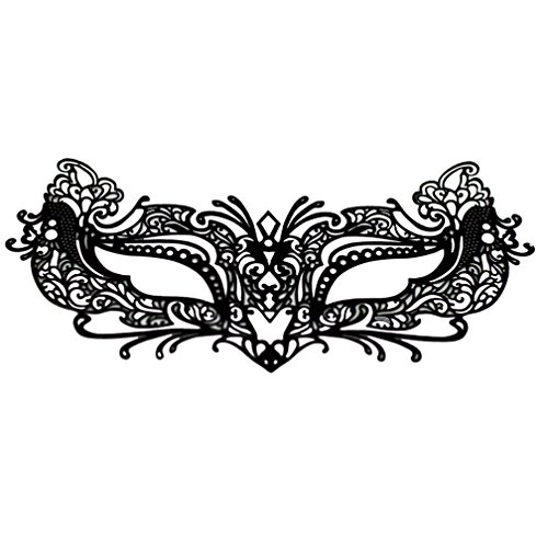 -. Title : EMILYSTORES Self-Adhesive Flower For Woman Girl Garden Tattoo Black Lace Paper Lashes Upper and Lower Costume Party Halloween Black Venetian Pretty Masquerade Mask 1PC
