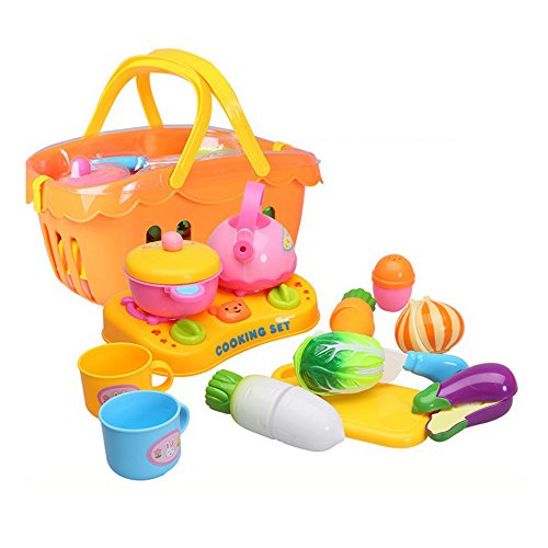 -. Title : Youtop 19pcs Plastic Pretend Play Kitchen Appliance Cutting Vegetables Toy Playset for Kids w/ Orange Basket
