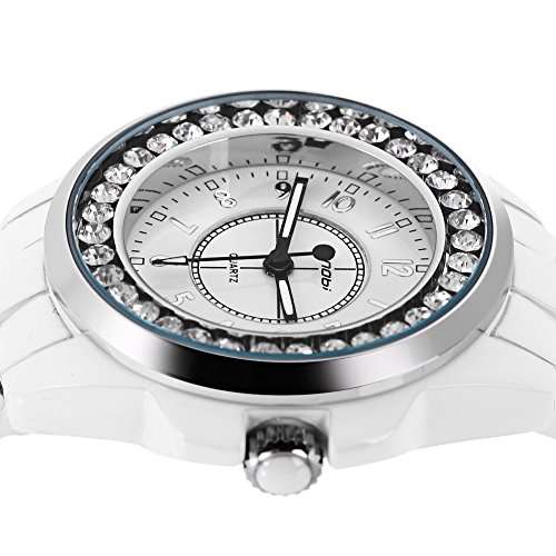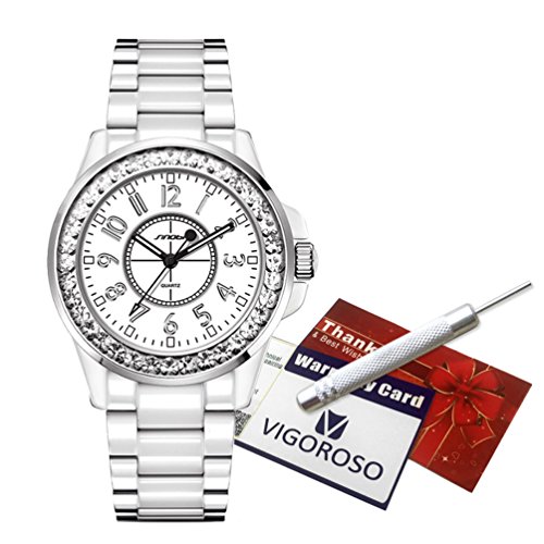 -. Title : VIGOROSO Watch Deluxe Ladies Big Size Women White Stainless Steel Bling Diamonds Quartz Wrist Watch