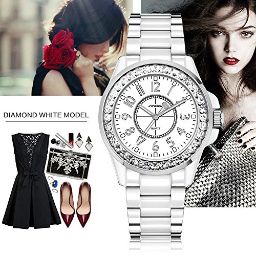 -. Feature : PRECISE TIME KEEPING:Japan quartz movement, battery included, provide precise and accurate time keeping. / Convenient and comfortable: Stainless steel clasp, free buckle, easy to put on or take off, use more convenient, more difficult to fall off. / FASHION CASUAL DESIGN: Analog display design, stainless steel band with the simplicity of business casual. Also make it a great gift for family or friends. / GOOD LOOKING: White dial with silver watch hand, white watch band.Looks very simple and fashion.Suitable for all types of people. / WATERPROOF FOR DAILY USE: 3ATM, not suitable for shower, swimming and diving