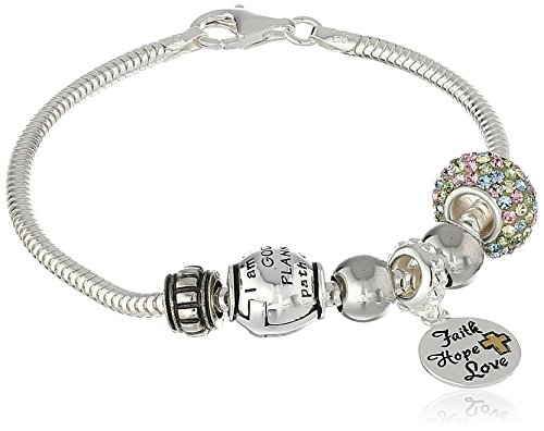 -. Title : CHARMED BEADS Sterling Silver Faith Hope Love Bead Charm Bracelet, 7.5"