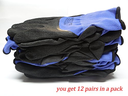 Work Gloves Men 12 pairs Sizes-Large 9,Very Flexible,Foamed Latex,Best Grip,Resistant to Abrasion.