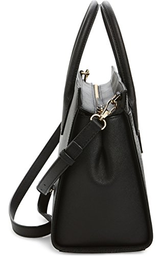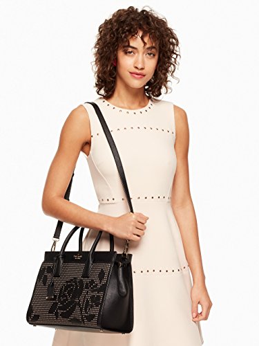-. Brand : New York -. Color : Black -. Department : womens -. EAN : 0098687071352 -. Feature : Black crosshatched perforated leather w/ ladylike floral pattern. / Top zip closure. Signature stripe lining. Protective metal feet. / Rolled top handles with hanging logo tag, 4" drop. / Interior, one zip and two slip pockets. Exterior front slip compartment; snap closure. / 10.7" (L) x 8.8" (H) x 5.1" (W). Adjustable shoulder strap, 20" drop. -. ProductGroup : Shoes -. ProductTypeName : HANDBAG -. Size : Medium -. Title : new york Cameron Street Perforated Candace Satchel Bag, Black -. UPC : 098687071352