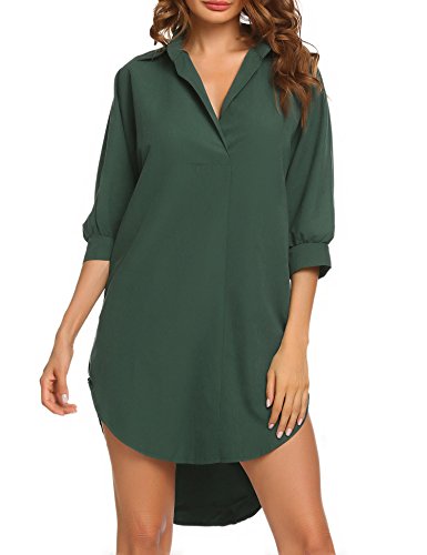 Easy, casual, relaxed fit,Turn-down collar, belted, Loose shirt dress for casual, party, beach