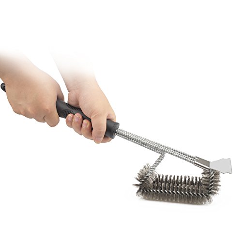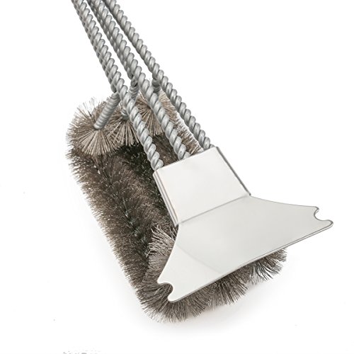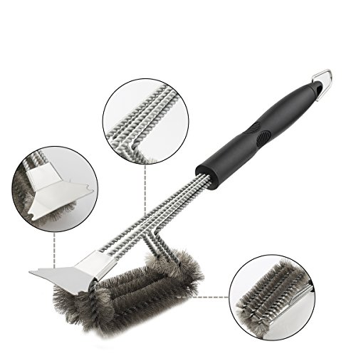 ★ClEANING SCRAPER DESIGN - The absolute fastest grill cleaning brushes ever developed.We have improved the grime cutting power of our original triple head design an.The BBQ Grill Brush included a heavy duty stainless steel BBQ grate scraper to make the roughest looking grill clean and ready to use in under 1 minute.