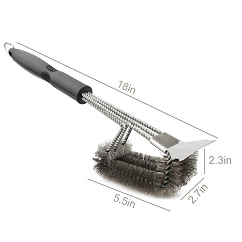 ★THE OPTIMAL HANDLE DESIGN -18 inches long -The grill brush will keep you safe from the heat generated by the barbecue grill, at the same time making it easier for you to apply as much pressure as you can
