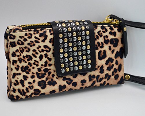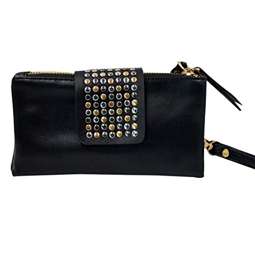 -. Title : Felice Women Soft Leather Wristlet Clutch Folded Rivets Zipper Wallet Evening Bag