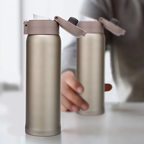 NO LEAK DESIGN -- Stainless steel cap with food grade silicone anti-leakage ring prevents any accidental leaks no matter tipped over or shake it.
