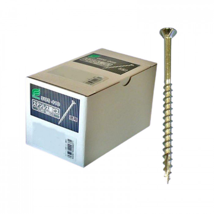 強度に優れたステンレスSUS410を採用。ステンレス製の細ビス(スリムビス)。極細仕上げに先端先割カットで木割れを防止。首下フレキ付。