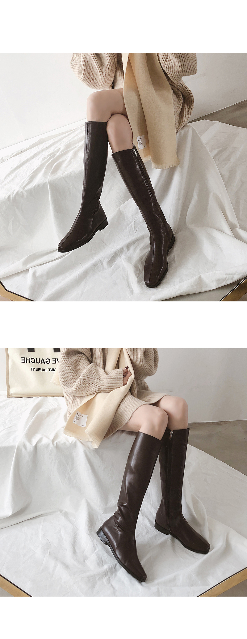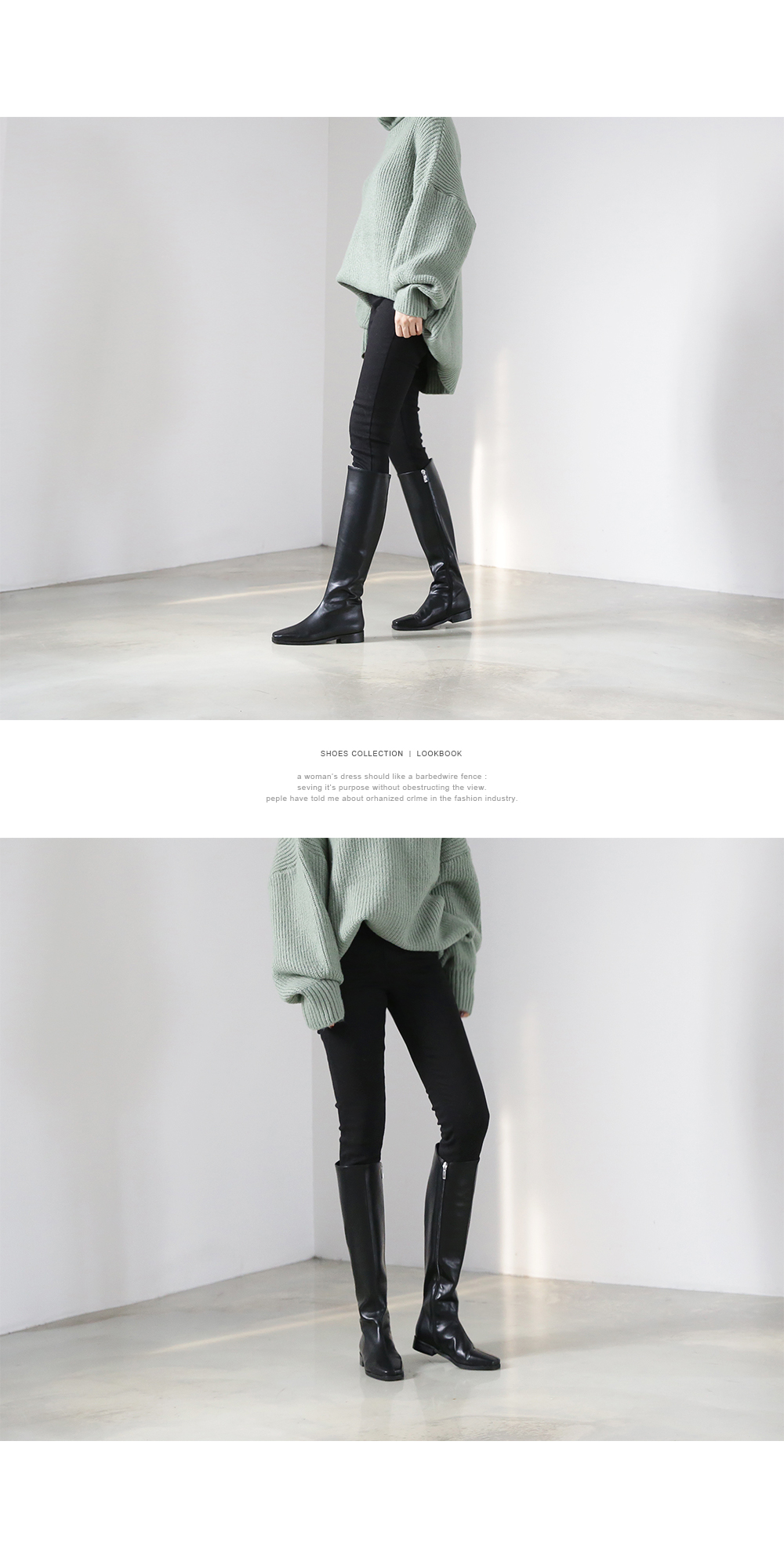 Flat long daily boots.