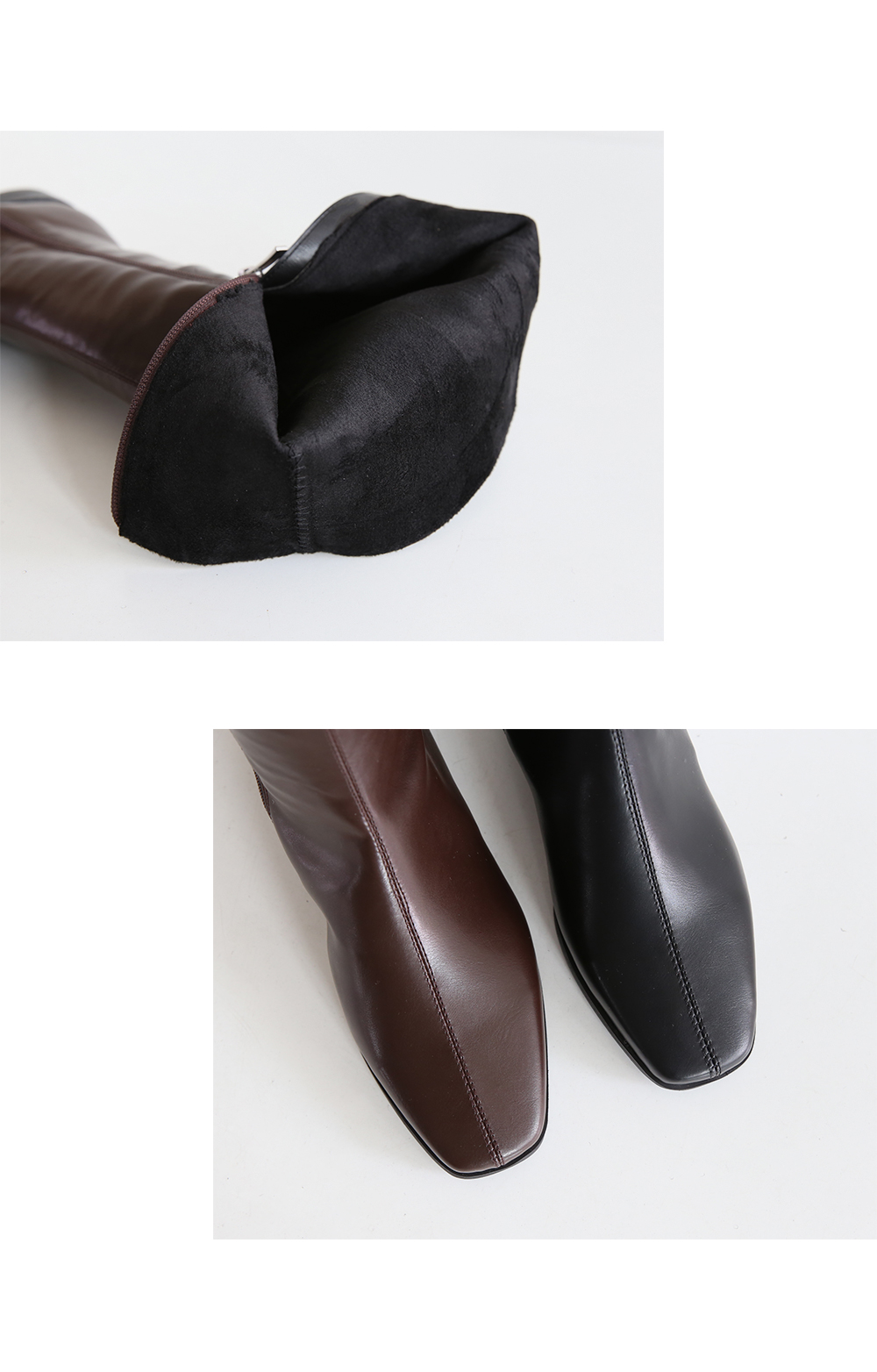 DETAILS - 소재 : 인조소가죽 - 컬러 : brown,black - 안감 : 기모안감 - 피팅감 : 정사이즈 / 무게 : 보통인편 - 착화감 : 안감 전체 기모로 따뜻해요 - 모델피팅 : 230