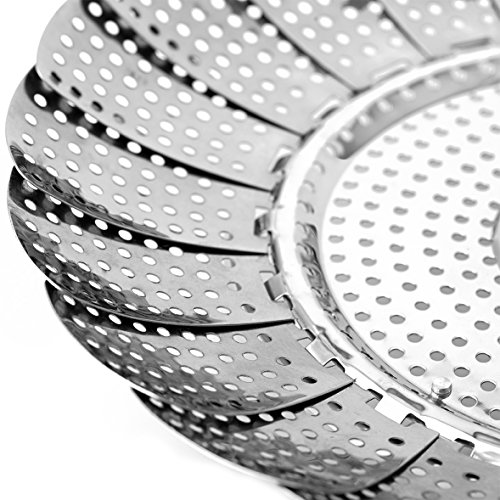 UNIQUE DESIGN & DISHWASHER SAFE - Expands (diameter - 7.2 inches to 11 inches) and adjusts to fit various pots and pan sizes, turning any pan into a Steamer. Opens like a water lily and Collapses to become compact to save storage space.
