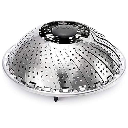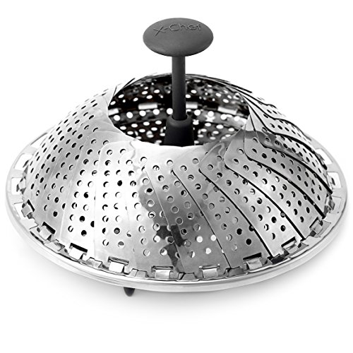 Top Benefits of X-Chef Veggie Steamer include: - Unique compact collapsible design for space saving storage - High premium stainless steel construction - Expands and adjusts to fit a lot kinds of pots and pans - Sturdy stainless steel legs that wont rust like some cheaper aluminum versions - Easy removal from pan with unique outstanding designed central handle - No assembly required, ready to use straight out of the box - Dishwasher safe making it easy and faster to clean