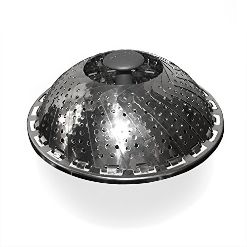EASY TO USE AND FOLDABLE - No assembly required. Legs and center post are already attached for a stable, durable, veggie steamer. It takes up less space than bamboo steamers. Easy removal from pan with sturdy extendable central handle.