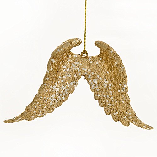 Angel Wings with Glitter Accents Gold-colored Resin Hanging Christmas Ornament
