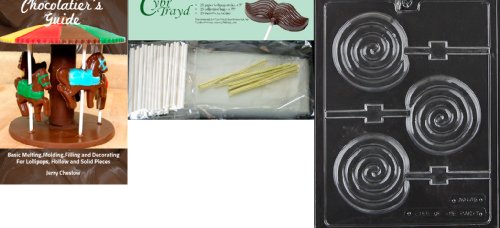 Cybrtrayd Swirl Lolly All Occasions Chocolate Candy Mold with Chocolatier's Bundle, Includes 25 Lollipop Sticks, 25 Cello Bags, 25 Gold Twist Ties and Chocolatier's Guide