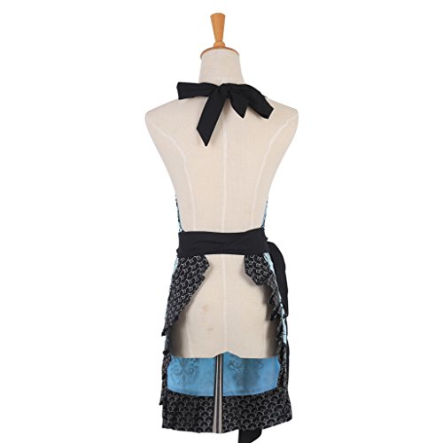 2016 Floral Pattern Double Layer Women Cooking Baking Kitchen Apron 100% Cotton Garden Apron with Pockets Great Gift For Wife Ladies Blue