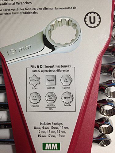 - Feature : MM 8-19 / 10 pieces / fits 6 different fastener shapes / Chrome plated / Full size wrenches