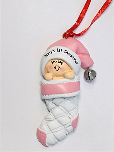 Baby's 1st Christmas Stocking Ornament (2 colors - Pink/Girl & Blue/Boy (Pink - Girl)