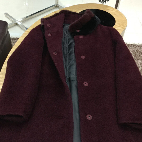 알바카의 가벼운 착용감과 고급스러움을 표현하고 있으며 백라인 안쪽 따스한 충전재가 있어 더 포근하고
