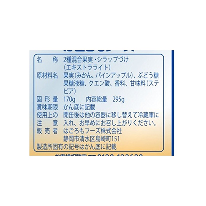 원본상품명: はごろも 甘みあっさりパイミン 295g×4個 (4064)