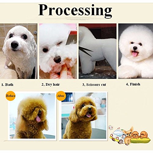 Package include 1 x 6.8" Straight Scissors Straight Scissors:They can be used for all types of grooming needs, from quick touch-up trimming to prep work for a larger job. Used for finishing, shaping, and patterning, the versatility of these scissors makes them an indispensable tool for pet owners. 1x 6.8" Thinning Scissors Thinning Scissors:are used to thin out hair on a thick coat. They have one fine-toothed blade and one cutting blade, so if used to snip through the dog's hair, they will only remove some of the hair, thinning it out, rather than cutting it away. They can also be used to blend different lengths of fur on the coat unlike a straight scissors which will leave a defined edge lengths of fur on the coat unlikea straight scissors which will leave a defined edge. 1 x 7.9" Curved Scissors Curved Scissors:The curved scissor designed for safety to cut your pets hair, curve around the paws and face also help not to poke a eye out. Easy use even for a beginner. Finger loops fit for most hand and the little pink colored insert make it very comfortable to hold operate. 1 x 7.5"Grooming Comb When you finish the hair of these small animals after you can use the beauty comb comb hair comb more supple, you can also comb the knotted hair.