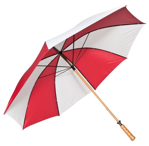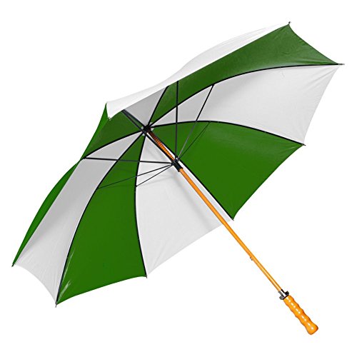Studio : S Frankford and Sons Inc Publisher : S Frankford and Sons Inc Product Description Double ribbed construction in forest green and white. Straight wooden handle adds design to the umbrella. 16 ribs and 8 panels provides high durability. Easy manual open and close mechanism. Windproof spring provides easy opening and closing. Wipe clean with a damp cloth. Dimensions: 49 diam. X 40H in.. 0