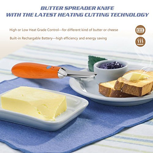 Upgrade Heated Knife Butter Spreader(Grain), Rechargeable Auto Warm, for Melting\Cutting\Spreading Butter Cheese Honey Jam Ice Cream, Food Grade for Home Kitchen Breakfast Dinner Restaurant Hotel