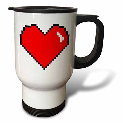 3dRose tm_193467_1 Pixel Heart Red Travel Mug, 14 oz, White