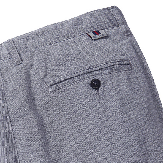 - 핀 스트라이프 패턴 디자인의 남성 팬츠.