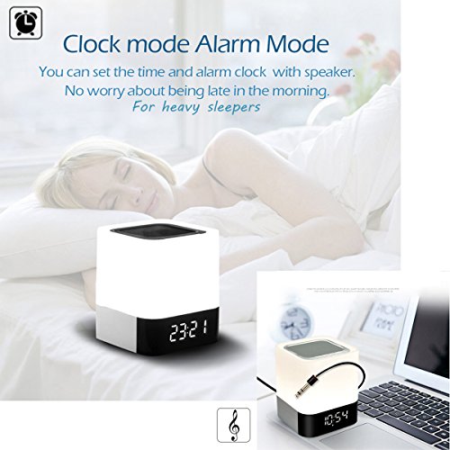 Night Light Bluetooth Speakers,WamGra All in 1 Touch Sensor Bedside Lamp/MP3 Music Player/Alarm Clock For kids and Adult,Party,Bedroom,Reading,Outdoor